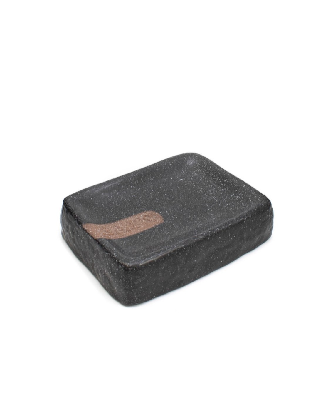 Portasaponetta in ceramica nero effetto pietra 14x9,5 h.3,5cm