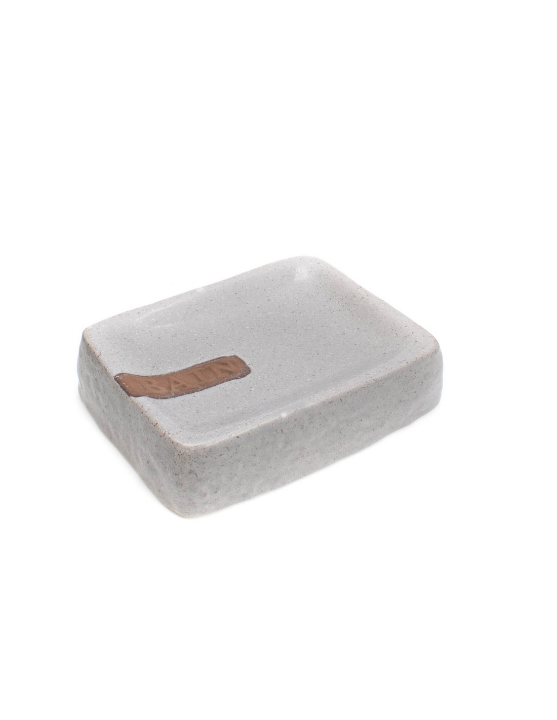 Portasaponetta in ceramica grigio effetto pietra 14x9,5 h.3,5cm