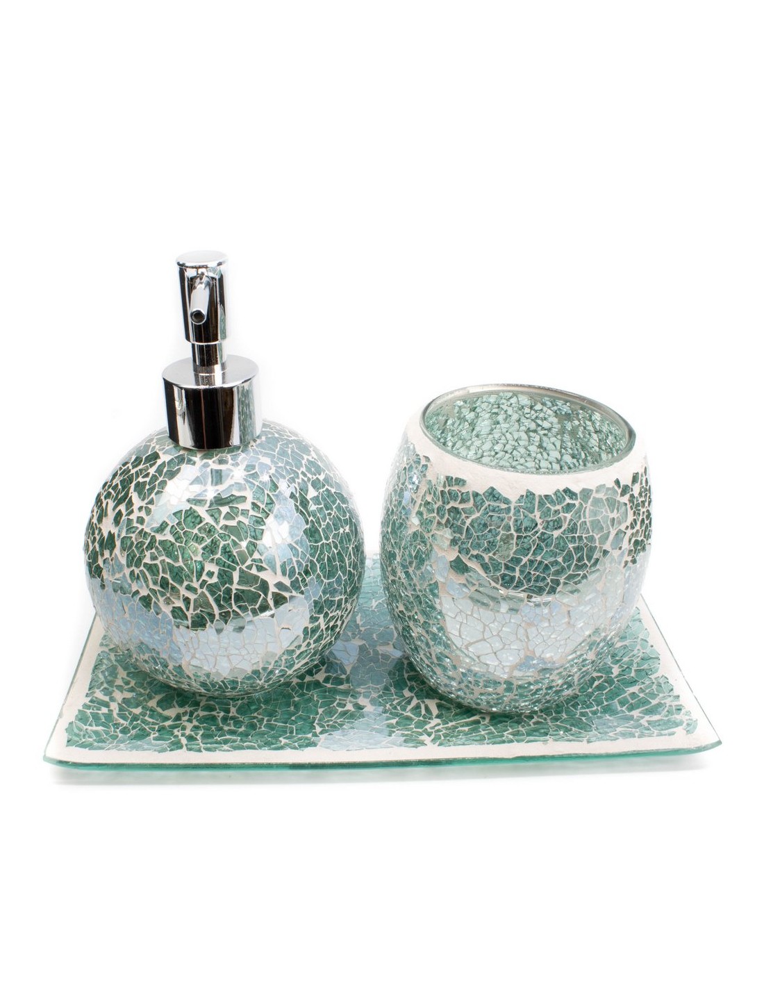 Portaspazzolini in vetro mosaico argento 9,5 x h.10,5 cm