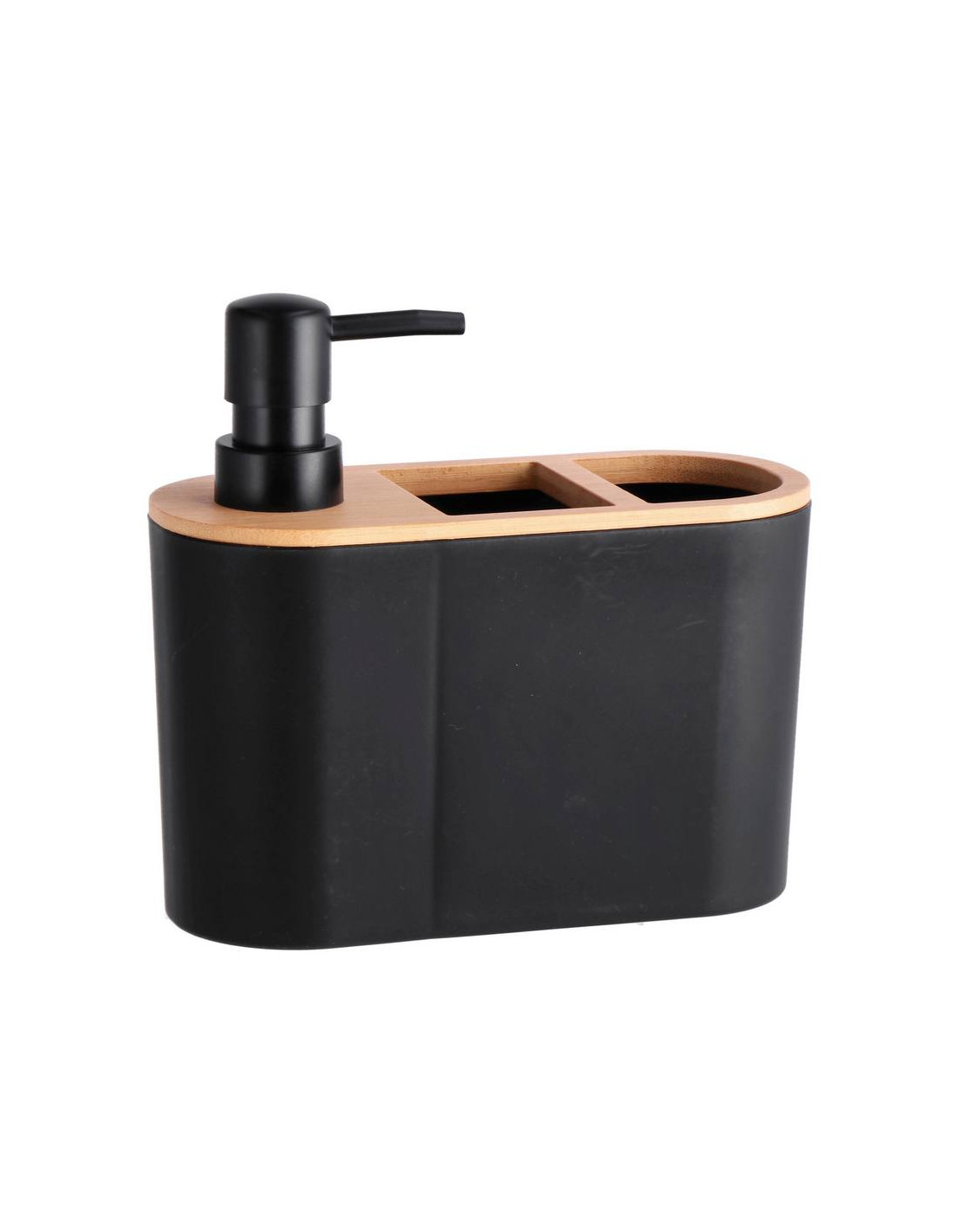 Dispenser 2 scomparti plastica e bambù 18x8cm h.17cm disponibile in 2 colori