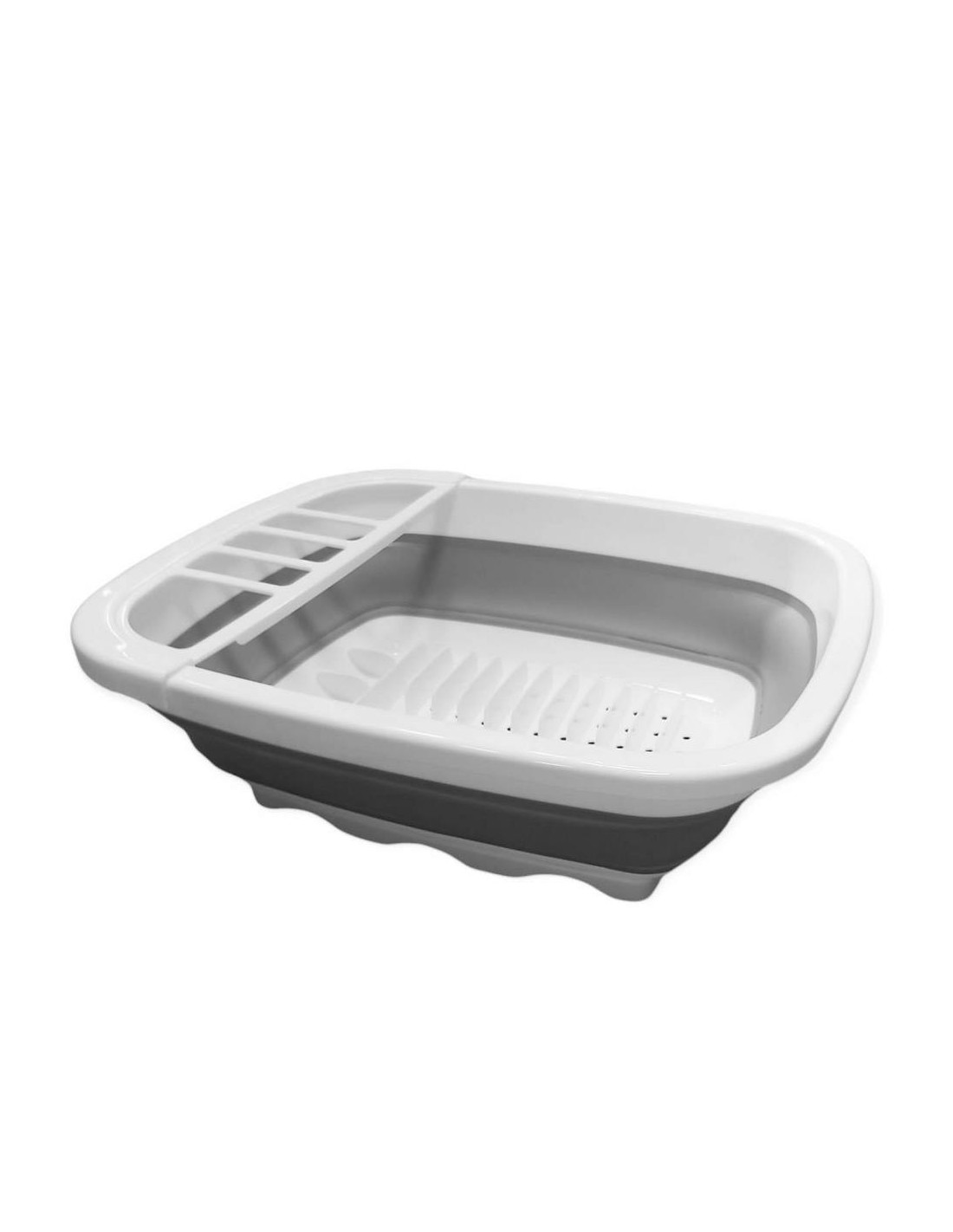 Perfetto per scolare stoviglie, piatti, bicchieri e altro con reparto dedicato a scolare posate, si ripiega in un attimo e si ripone facilmente.