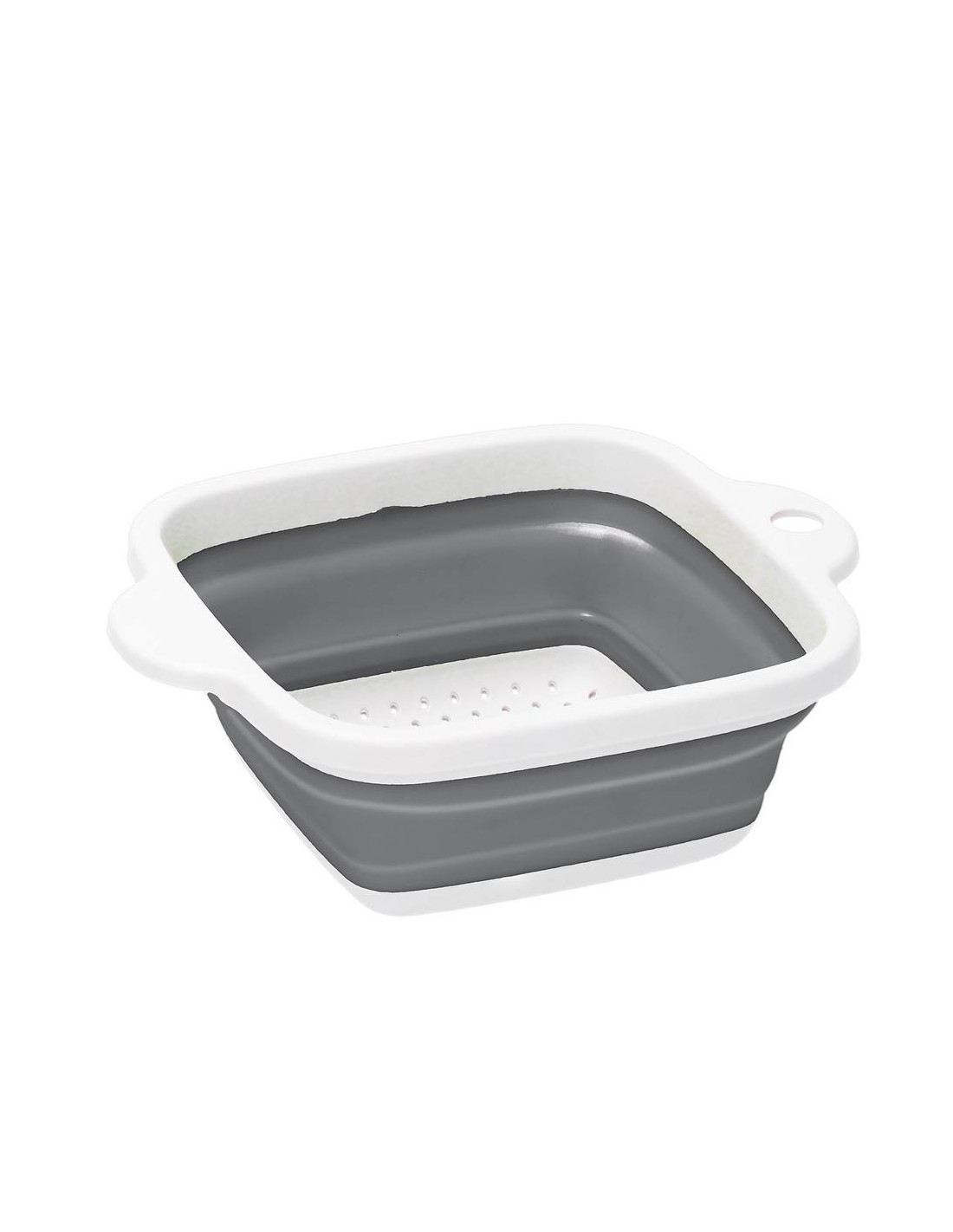 • Disponibile in due tonalità di colore: bianco e grigio o verde e bianco. Ideale per scolare pasta, riso, legumi e altro, si ripiega con un gesto e si conserva facilmente.