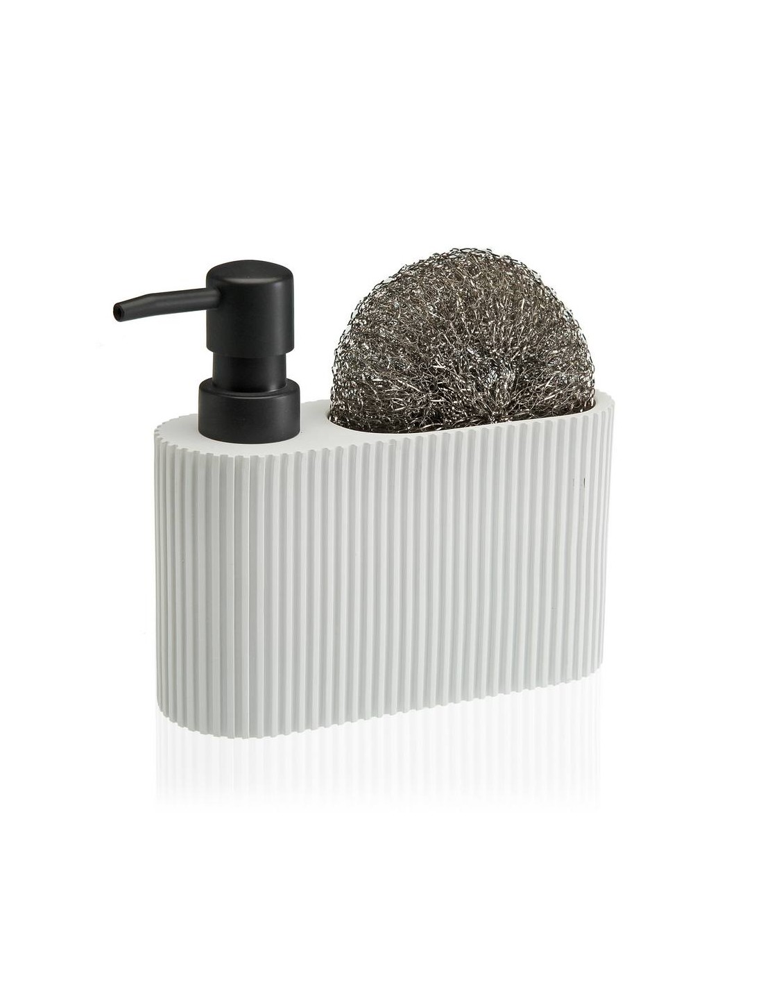 Il dispenser sapone millerighe unisce eleganza e praticità grazie alla sua struttura in resina solida e alla superficie a rilievo che dona un tocco moderno a qualsiasi ambiente. La pompetta dal design essenziale si abbina perfettamente al corpo del dispenser, mentre il vano laterale ospita la spugnetta metallica inclusa, mantenendo tutto in ordine vicino al lavello. Disponibile in bianco luminoso, grigio raffinato o nero intenso, si integra con facilità in cucine e bagni contemporanei offrendo un accessorio funzionale, resistente e curato nei dettagli, ideale per chi desidera un’organizzazione impeccabile con stile.
