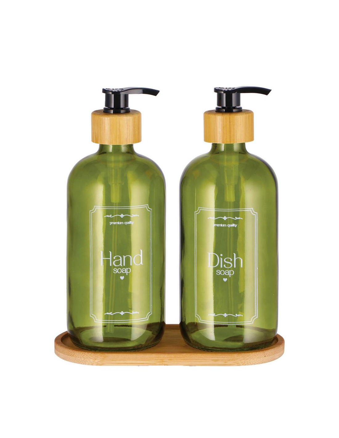 Set 2 dispenser in vassoio bamboo diam.8cm h.23cm