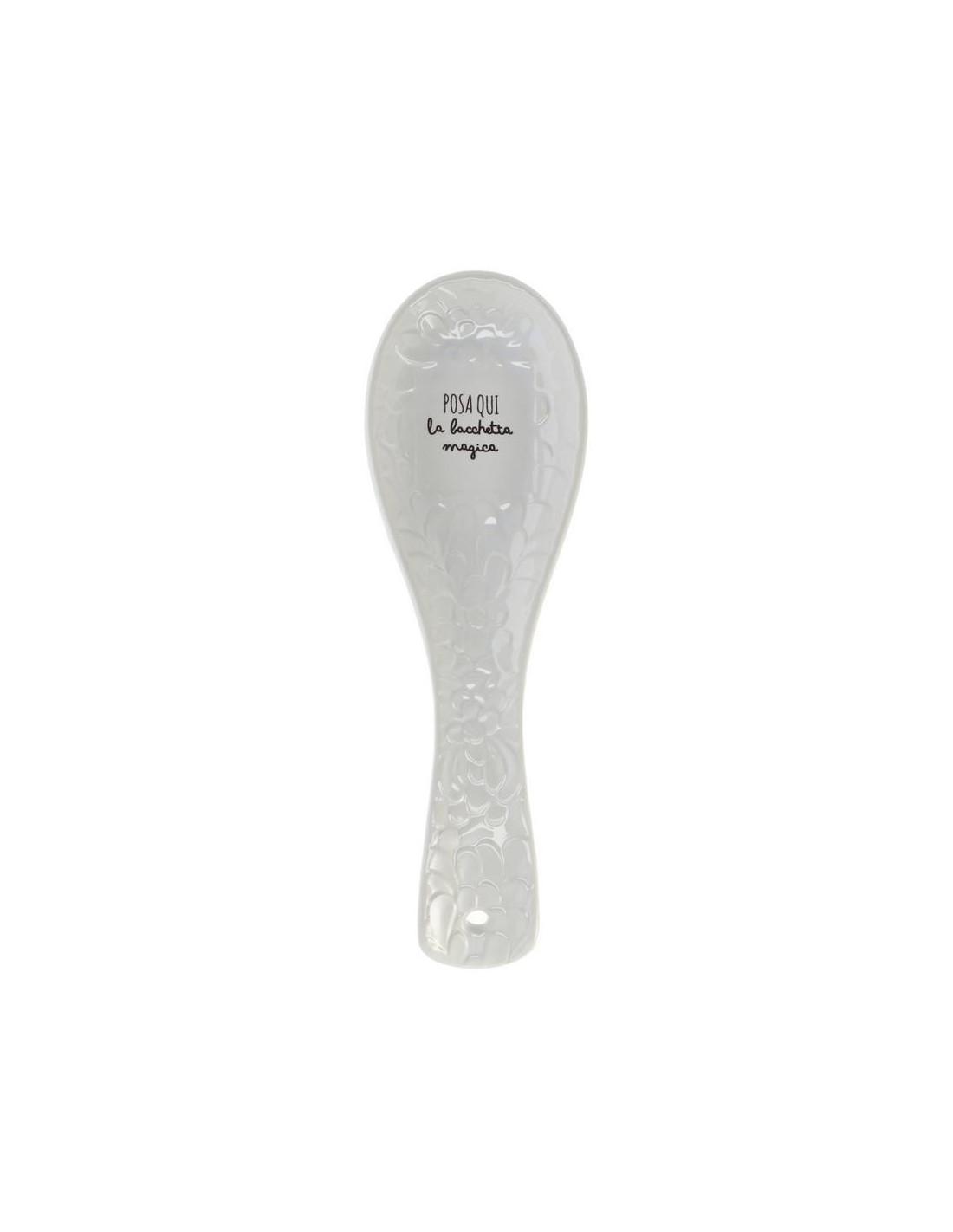 Il poggia mestolo ceramica WRITING 25x8cm h.3cm è l'accessorio perfetto per aggiungere un tocco di stile alla tua cucina mantenendo ordine e pulizia durante la preparazione dei pasti. Realizzato in ceramica resistente con finitura lucida, è disponibile in due varianti di colore: bianco e beige, entrambe decorate con motivi floreali e scritte italiane che donano carattere e originalità. Puoi scegliere tra "KISS DA COOK :)" per un tocco giocoso oppure "L'APPETITO VIENE MANGIANDO" per un richiamo alla tradizione. Le dimensioni generose di 25 cm di lunghezza, 8 cm di larghezza e 3 cm di altezza lo rendono ideale per accogliere mestoli e cucchiai di ogni tipo, mentre il foro all'estremità consente anche di appenderlo. Un complemento pratico e decorativo che valorizza ogni piano cucina.