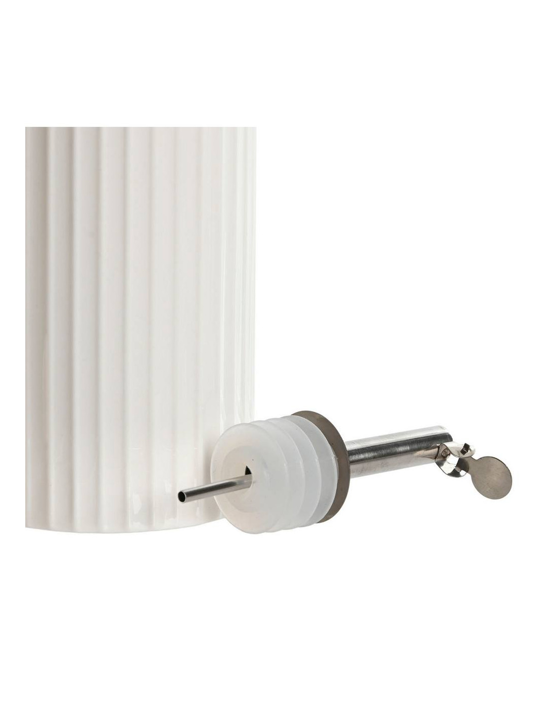 Raffinata e funzionale, questa oliera in porcellana bianca è l'accessorio che unisce l'eleganza del design alla praticità in cucina e a tavola. Con dimensioni perfette di 7x7cm e un'altezza di 22cm, si integra con stile in ogni ambiente, valorizzando il tuo olio d'oliva o altri condimenti liquidi. La sua capienza è di 350ml, ideale per un uso quotidiano senza la necessità di ricariche frequenti. Il corpo in porcellana lucida presenta una distintiva texture a coste verticali che aggiunge un tocco di modernità scandinava e un'ottima presa. È sormontata da un pratico beccuccio dosatore in metallo cromato lucido, progettato per un versaggio preciso e senza gocciolamenti, garantendo sempre la quantità perfetta. Trasforma la presentazione dei tuoi condimenti in un gesto di classe e mantieni il tuo olio al riparo dalla luce per una migliore conservazione. Aggiungi subito un tocco di sobria eleganza alla tua casa!