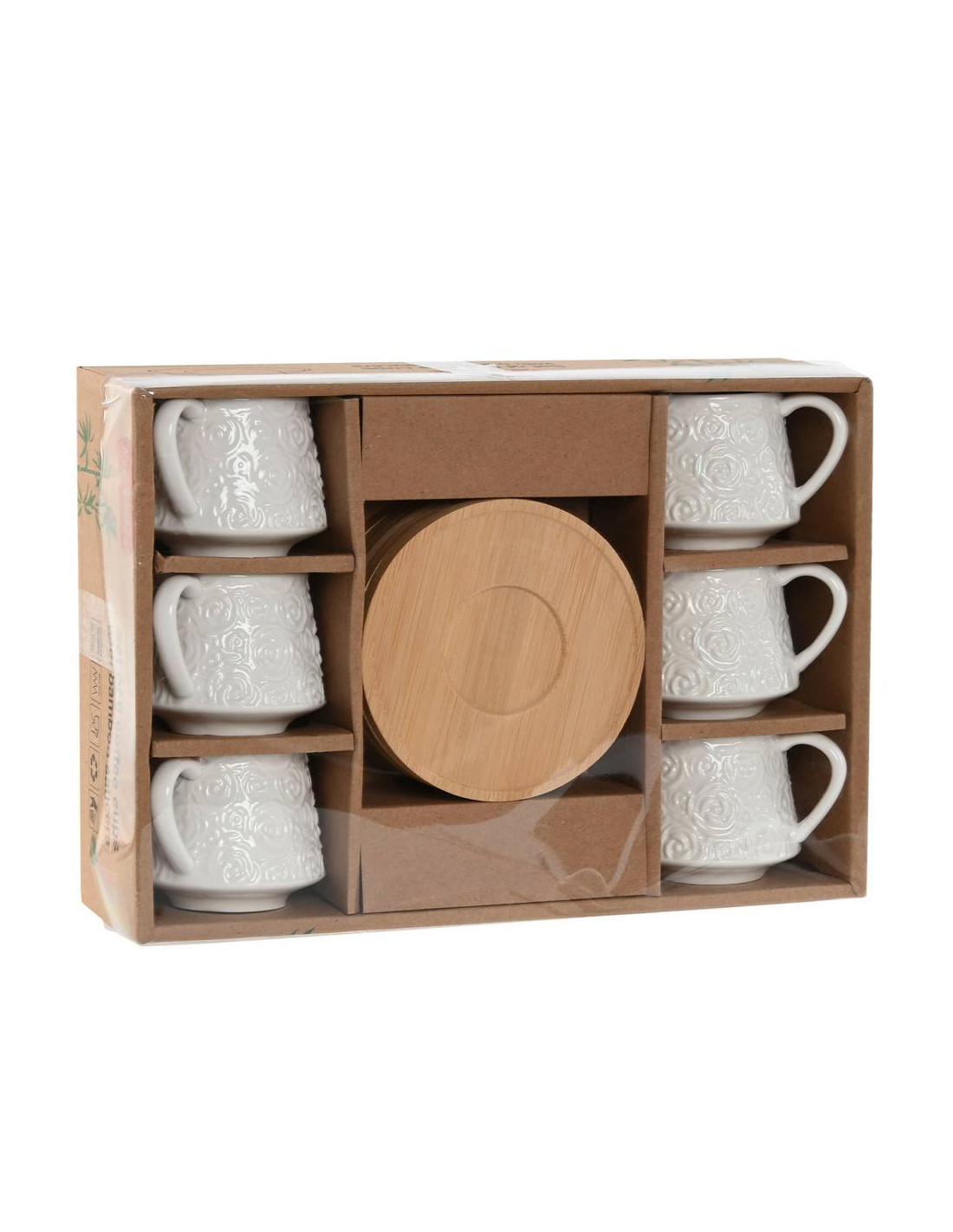 Set 6 tazzine caffè ROSES porcelana+bambu 8,6x6,6x5,7 90ml