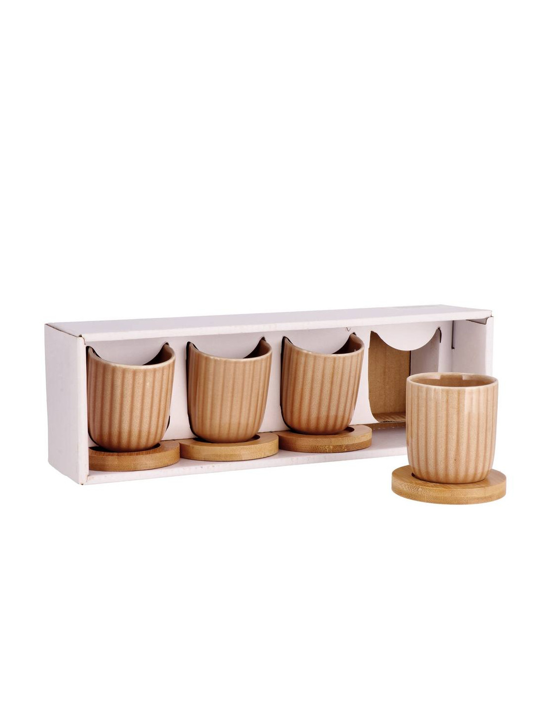 Set 4 bicchieri ceramica+bamboo DEL diam.6cm h.7cm