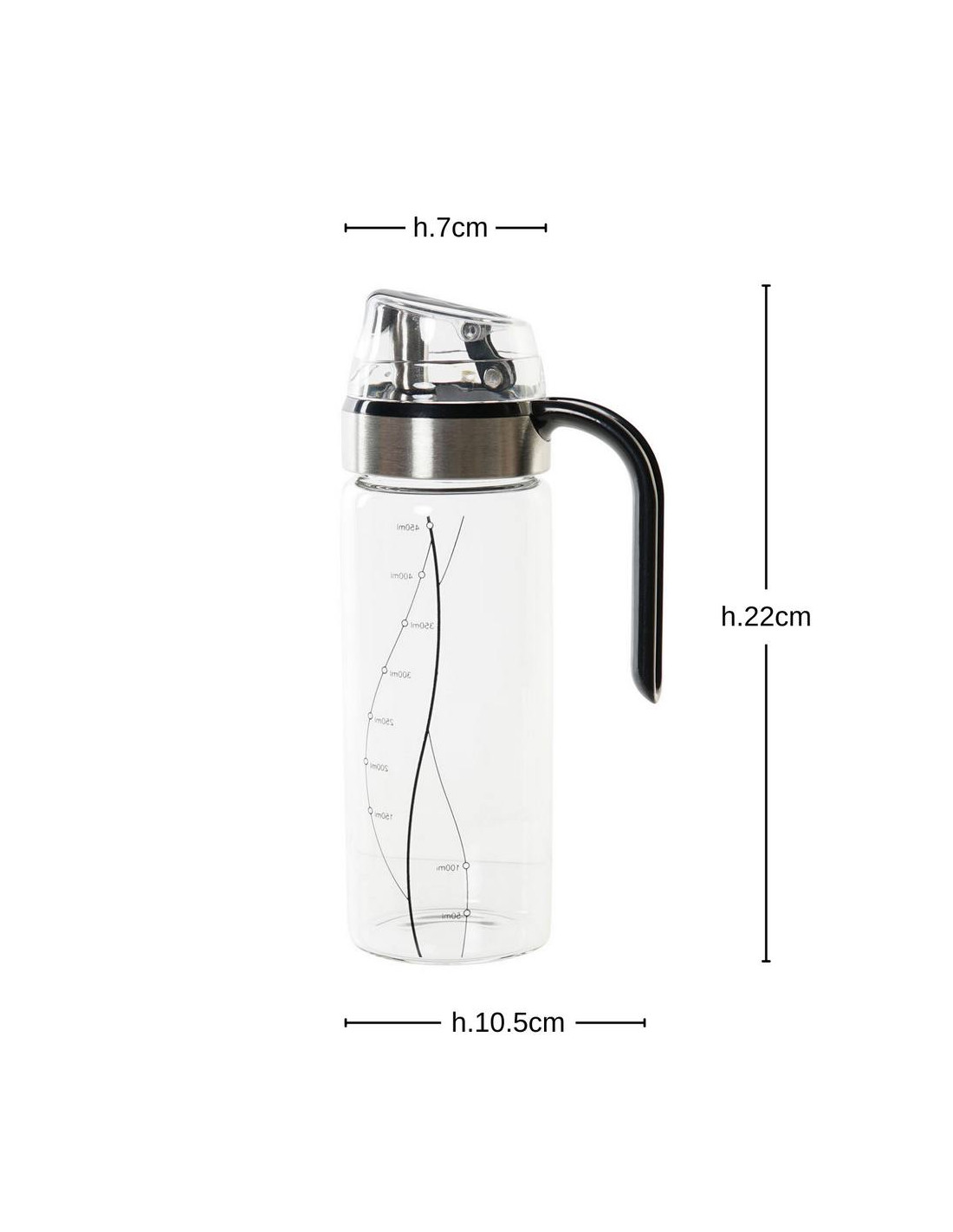 Aggiungi un tocco di eleganza e praticità alla tua tavola con questo contenitore per olio e aceto realizzato in vetro borosilicato di alta qualità. Con una capacità di 450 millilitri, questo dispenser è ideale per conservare e servire i tuoi condimenti preferiti. Il design funzionale presenta due beccucci separati con tappi anti-goccia, garantendo un versaggio preciso e pulito. L'impugnatura ergonomica nera offre una presa sicura e confortevole. Le dimensioni compatte, con una base di 10,5 centimetri di lunghezza per 7 centimetri di larghezza e un'altezza di 22 centimetri, lo rendono un accessorio pratico e poco ingombrante. Il vetro borosilicato trasparente permette di visualizzare facilmente il contenuto e si adatta perfettamente a qualsiasi stile di arredamento. Rendi più semplice e raffinato il momento di condire le tue pietanze con questo indispensabile accessorio per la tua cucina.