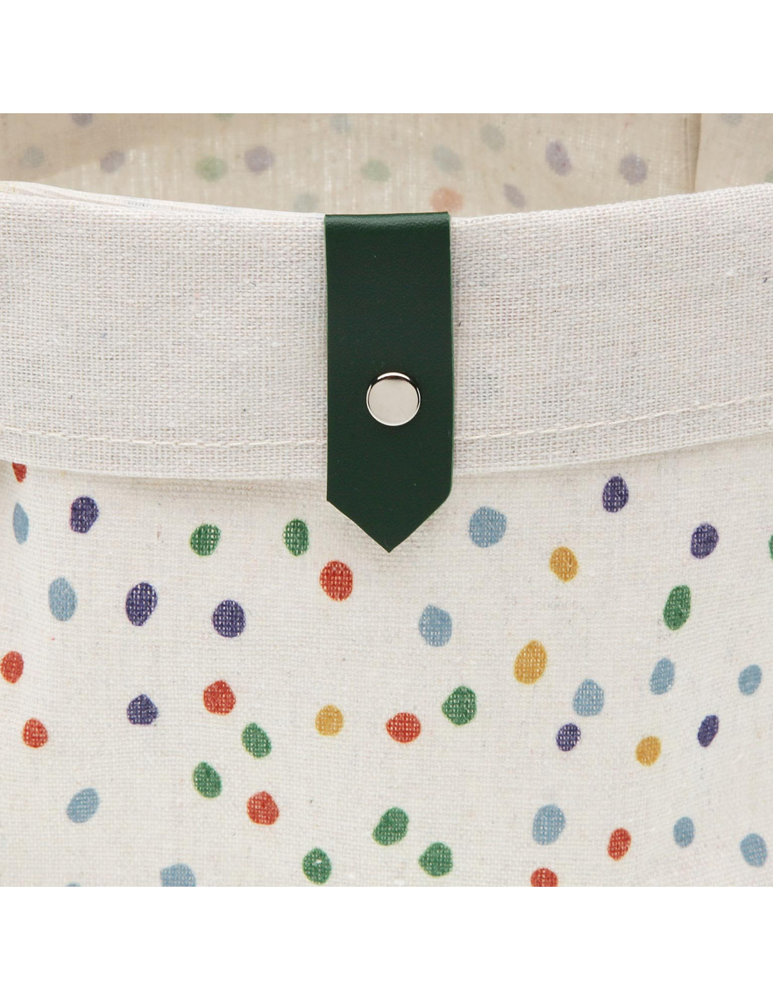 Porta ordine e allegria in ogni stanza con il set di 3 ceste quadrate Dotty. Questi versatili contenitori, realizzati in resistente poliestere beige e vivacizzati da un allegro motivo a pois multicolore, sono la soluzione perfetta per organizzare con stile e funzionalità. Il set include tre ceste di diverse dimensioni, pensate per adattarsi a ogni tua esigenza di spazio: la cesta grande misura 14x14x14 cm, la media 12x12x12 cm e la piccola 10x10x10 cm. Ideali per riporre giocattoli, accessori, prodotti per il bagno o qualsiasi altro oggetto, queste ceste non solo ti aiutano a mantenere l'ordine, ma aggiungono anche un tocco decorativo grazie al loro design giocoso e colorato. Perfette per la cameretta dei bambini, il bagno, il soggiorno o l'ufficio, le ceste Dotty sono un complemento d'arredo pratico e di tendenza, che unisce funzionalità e un'estetica vivace.