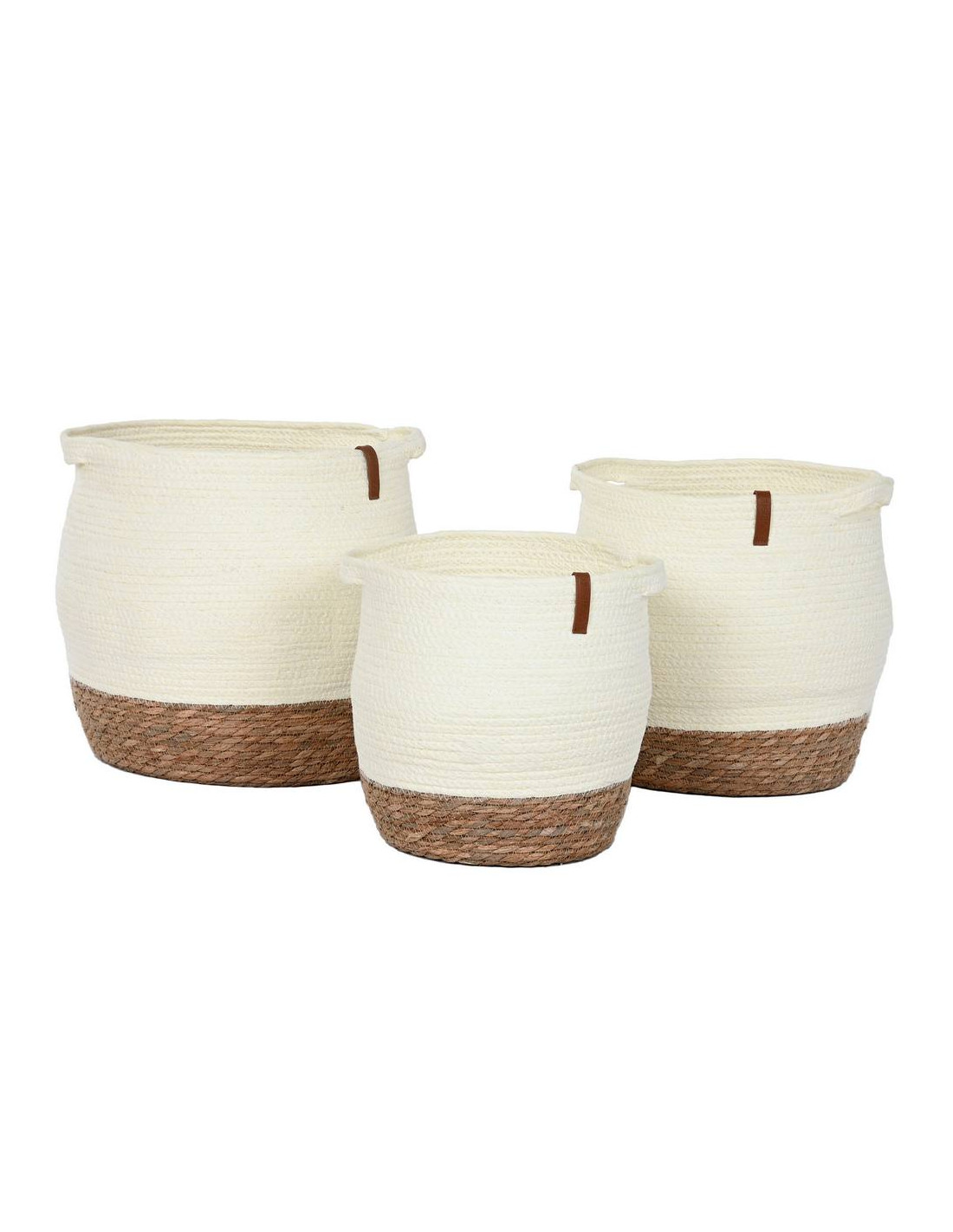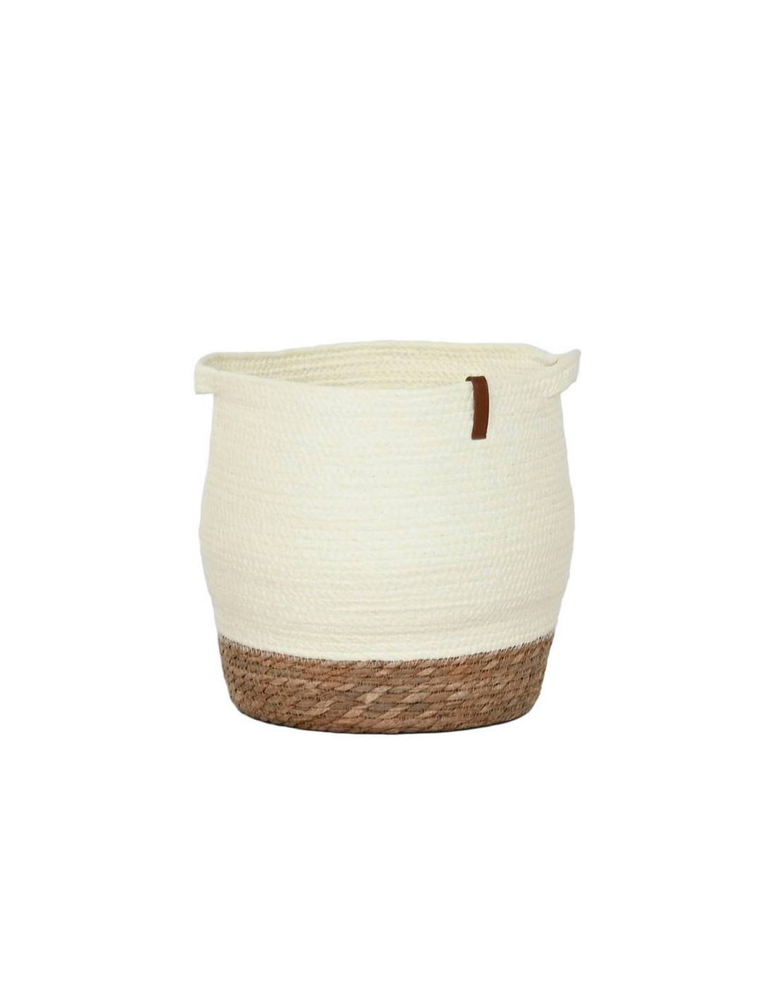 Rinnova l'organizzazione di ogni ambiente con questa cesta che unisce l'eleganza della corda bianca alla naturalezza della fibra vegetale! Questa cesta, dal design versatile e raffinato, è perfetta per aggiungere un tocco di stile naturale alla tua casa. Disponibile in tre misure differenti, pensate per adattarsi ad ogni tua esigenza di spazio. La cesta più grande è ideale per organizzare coperte, cuscini, o riviste, mantenendo la tua casa sempre ordinata con un tocco di calore. Le misure media e piccola sono perfette per riporre asciugamani, giocattoli, accessori o qualsiasi altro oggetto tu desideri avere a portata di mano con praticità ed eleganza. Questa cesta non è solo un contenitore funzionale, ma un vero e proprio elemento d'arredo che conferirà un'atmosfera accogliente e rilassante alla tua casa, grazie ai materiali naturali e al design curato. Scegli la misura perfetta per te e trasforma ogni stanza in uno spazio organizzato con stile e un tocco di natura!