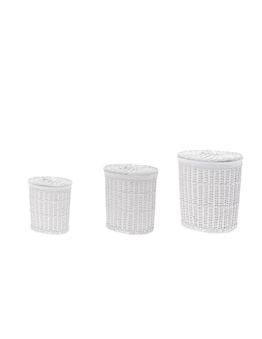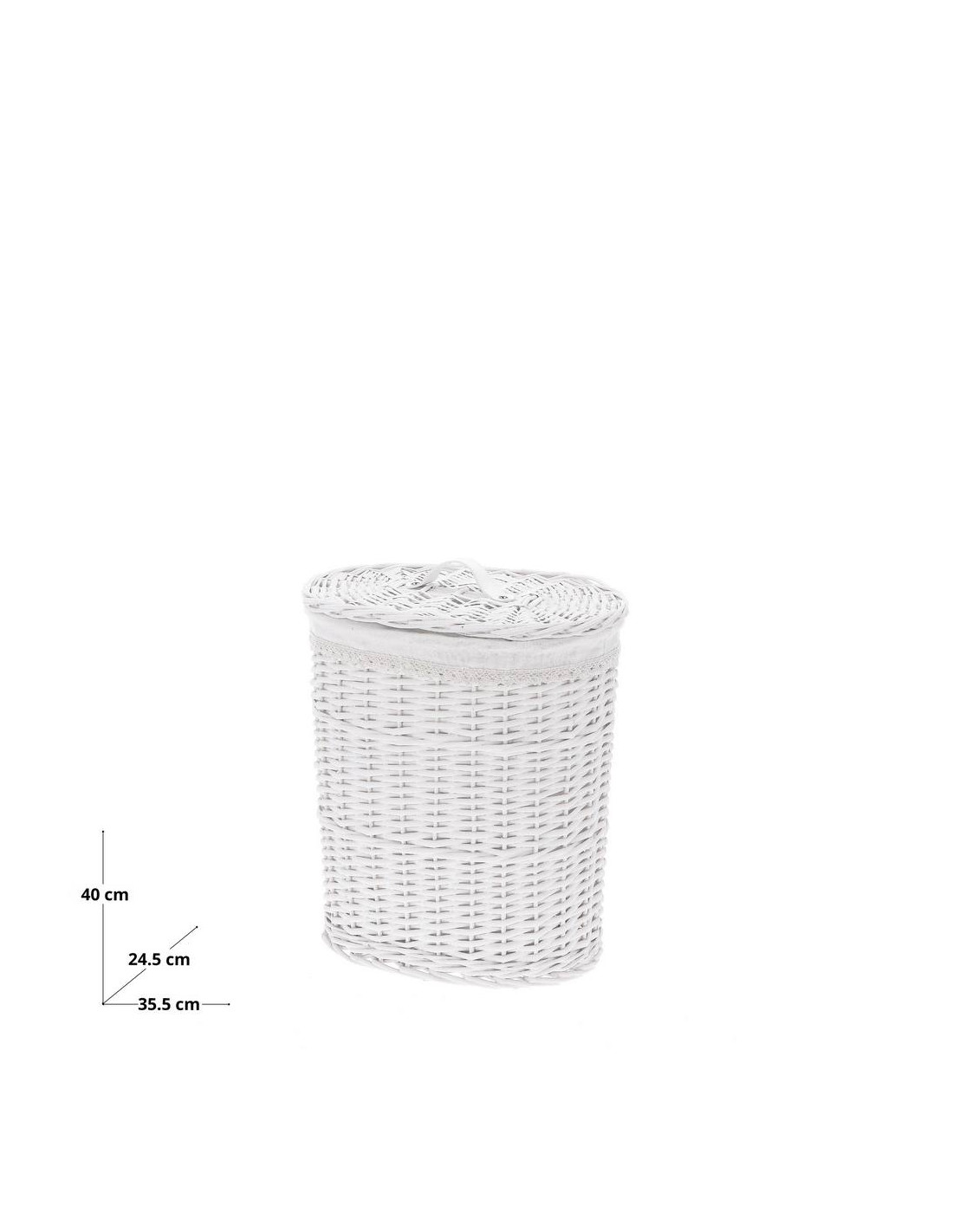 Rinnova il tuo ambiente con il cesto portabiancheria Samy, l'accessorio perfetto per unire ordine e stile nella tua casa. Realizzato in elegante salice bianco, questo cesto ovale offre un tocco di raffinata semplicità che si adatta a ogni tipo di arredamento, dal classico allo shabby chic. Ogni cesto è dotato di un comodo rivestimento interno in tessuto bianco e di un pratico coperchio, ideali per mantenere l'ordine e nascondere il contenuto con discrezione. Scegli la misura più adatta al tuo spazio: la taglia S misura 35,5x24,5 cm con un'altezza di 40 cm, perfetta per piccoli ambienti; la taglia M ha dimensioni di 43x30,5 cm con un'altezza di 48 cm, ideale per un utilizzo intermedio; mentre la taglia L misura 50x37 cm con un'altezza di 56,5 cm, la soluzione ottimale per volumi maggiori. Questo cesto può diventare un elemento di design funzionale, perfetto non solo per la biancheria ma anche per riporre coperte, giocattoli o altri oggetti, mantenendo sempre un'estetica impeccabile. Scegli la tua misura e aggiungi subito al carrello.