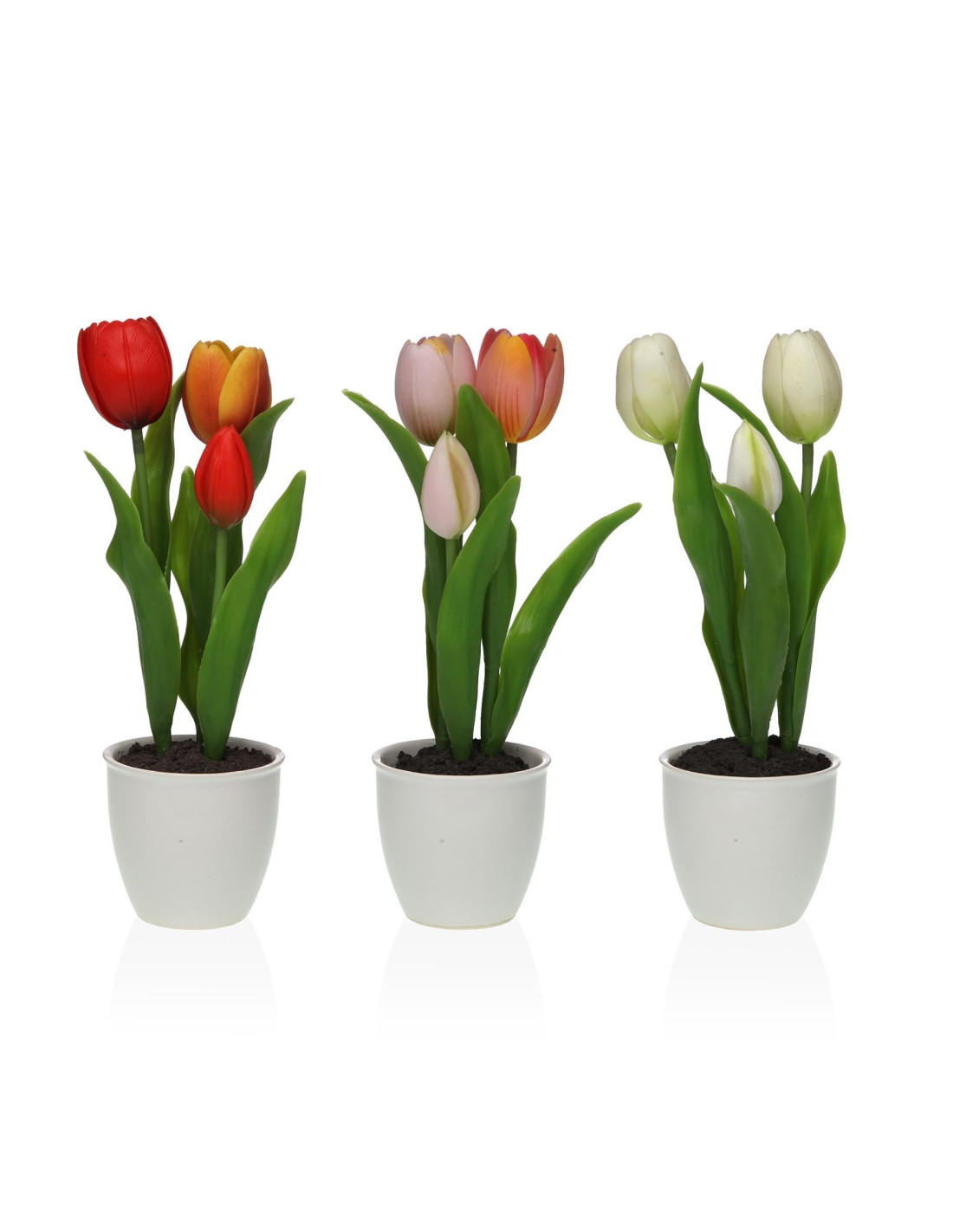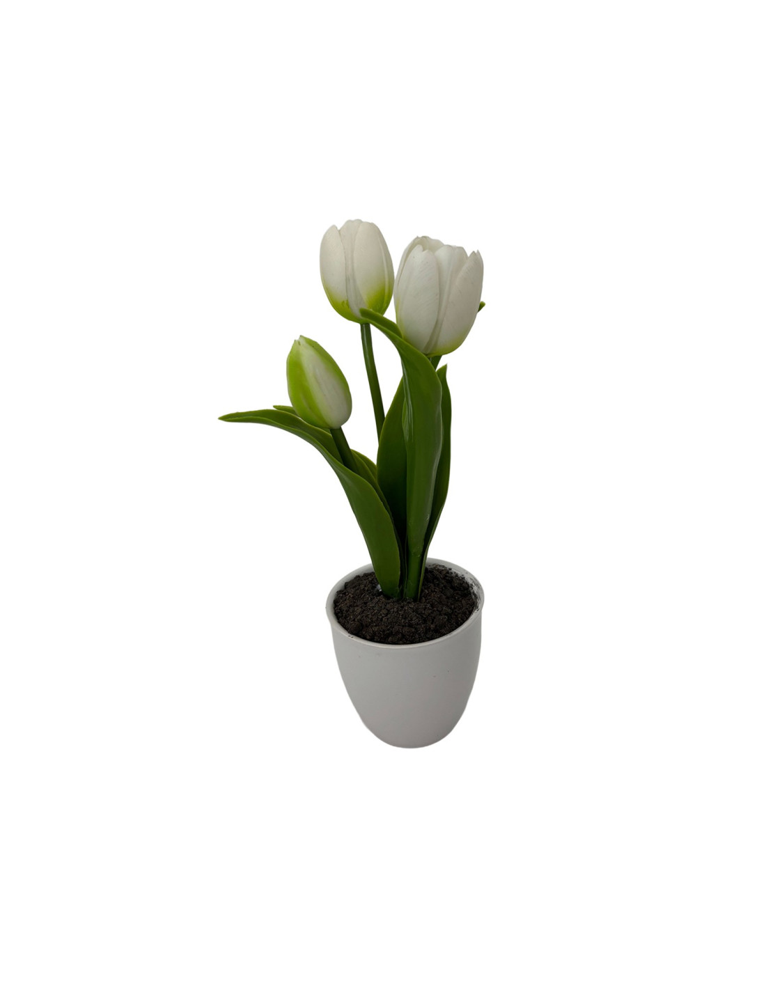 Tulipano Artificiale in Vasetto Bianco 20cm - 3 Colori Assortiti