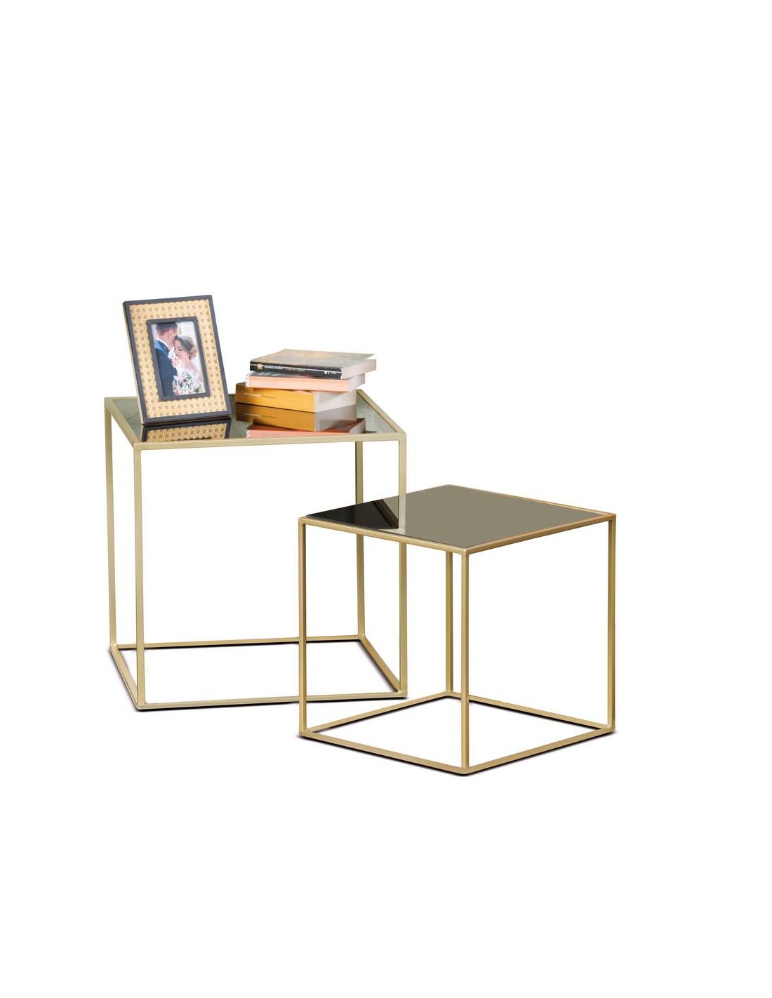 Tavolo Quadrato Oro in Ferro e vetro h.40cm/h.50cm
