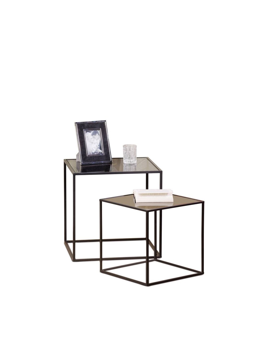 Tavolo Quadrato Nero in Ferro e vetro h.40cm/h.50cm
