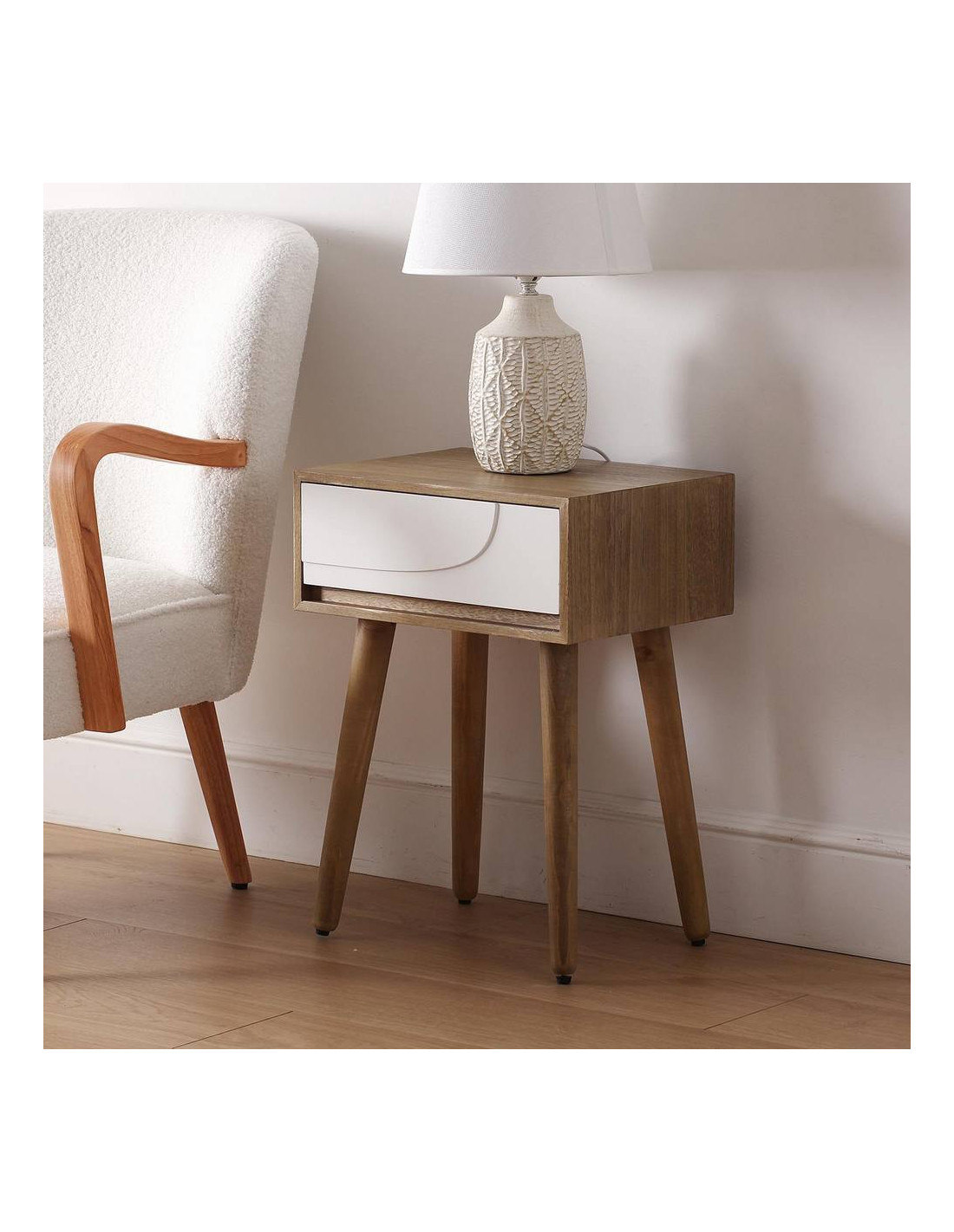 Il Comodino EAMES con 1 cassetto è l'aggiunta perfetta per chi cerca un pezzo di arredamento che unisca stile e funzionalità. Con una lunghezza di 40 cm, una larghezza di 30 cm e un'altezza di 53 cm, questo comodino compatto è ideale per spazi di tutte le dimensioni. Realizzato in legno di alta qualità, presenta un elegante cassetto bianco che offre ampio spazio per riporre oggetti personali, mantenendo la tua camera da letto ordinata e organizzata. Le gambe affusolate in legno conferiscono un tocco di design moderno e minimalista, rendendolo un complemento d'arredo versatile che si adatta a qualsiasi stile di decorazione. Perfetto per posizionare una lampada da lettura, libri o una sveglia, il Comodino EAMES è un must-have per chi desidera combinare estetica e praticità. Non perdere l'occasione di migliorare il tuo spazio con questo pezzo di design unico e funzionale.