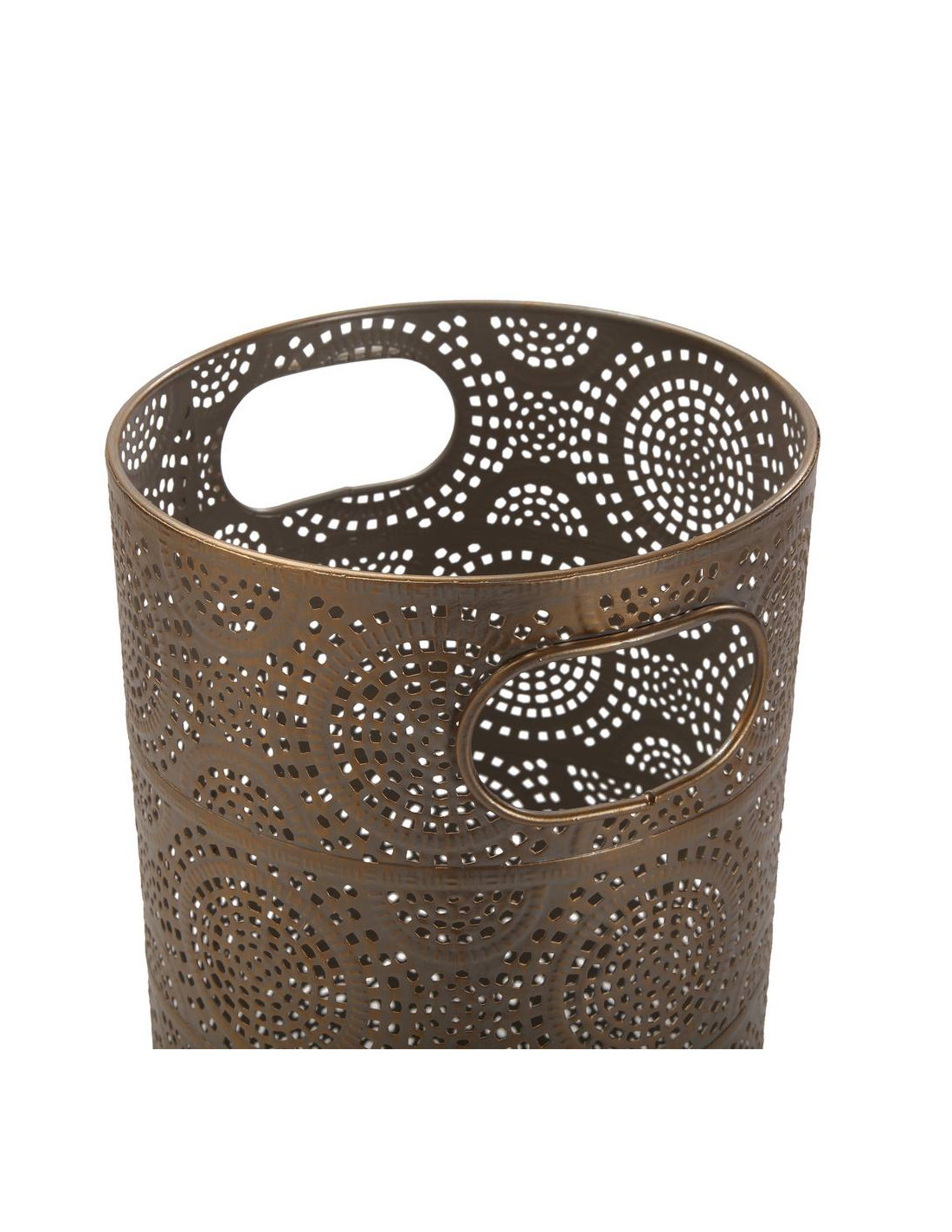 Portaombrelli cilindrico in metallo traforato bronzo con manici