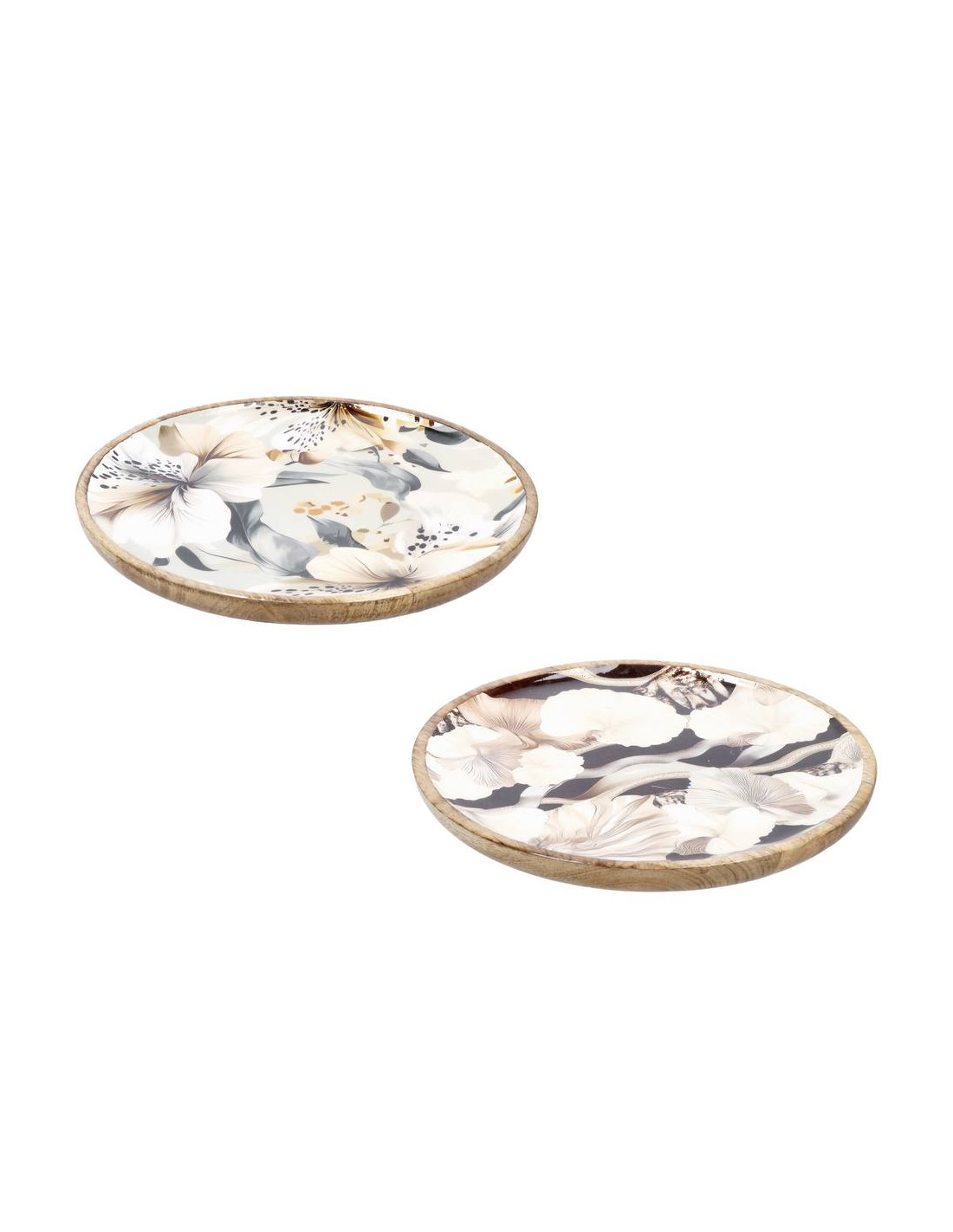 Piatto tondo in legno ABEL dal diametro di 30 cm, proposto in due decori raffinati che uniscono tonalità naturali e motivi floreali eleganti. La superficie liscia e lucida valorizza i dettagli del disegno, mentre il bordo in legno dona calore e un tocco artigianale. Perfetto come centrotavola, svuotatasche o elemento decorativo su mensole e consolle, si integra facilmente in ambienti moderni, nordici o classici grazie ai colori neutri e armoniosi. Un accessorio versatile che aggiunge stile e personalità alla casa con un equilibrio ideale tra estetica e funzionalità.