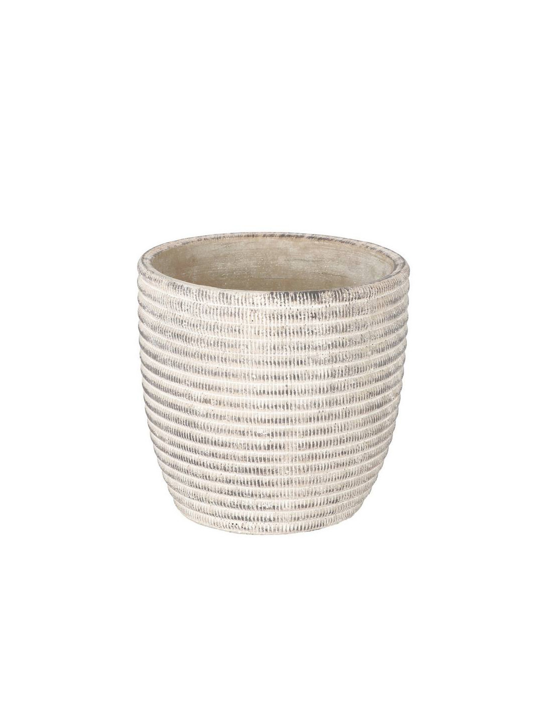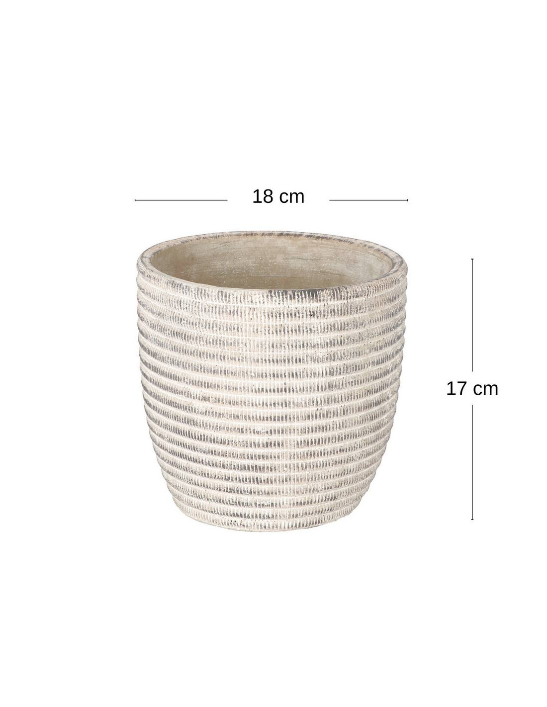 Il vaso in cemento che presentiamo è un elemento d’arredo dallo stile moderno e industriale, con un diametro di 18 cm e un’altezza di 17 cm. La sua superficie testurizzata con rigature orizzontali dona un aspetto unico e una qualità tattile interessante. Realizzato per essere resistente e funzionale, è adatto sia per l’uso interno che esterno. Il colore neutro e la forma semplice lo rendono versatile per abbinarsi a diversi stili decorativi, mentre la robustezza del materiale garantisce una lunga durata. Perfetto per ospitare una varietà di piante, questo vaso aggiunge un tocco di eleganza moderna a qualsiasi spazio.