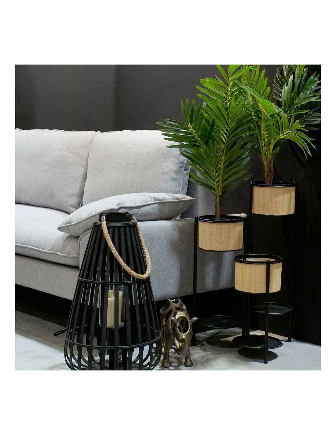 Valorizza con stile il tuo spazio verde con questa incantevole fioriera a scaletta, un connubio perfetto tra funzionalità e design naturale. Realizzata con una struttura robusta in metallo nero e ripiani in caldo bambù intrecciato color naturale, questa fioriera a tre livelli è ideale per esporre le tue piante preferite con un tocco di eleganza. La sua forma a scaletta non solo offre un originale effetto scenografico, ma permette anche di organizzare al meglio le tue piante, garantendo a ognuna la giusta esposizione alla luce. Pratica e versatile, questa fioriera è pieghevole, consentendoti di riporla facilmente quando non in uso, ottimizzando gli spazi. Le dimensioni di base sono 40x40cm, con un'altezza totale di 70,5cm, misure perfette per adattarsi a balconi, terrazzi, interni ed esterni, portando un angolo di natura e design ovunque tu desideri.