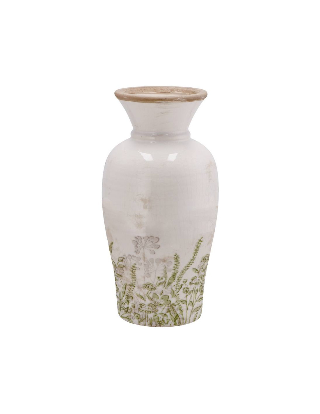 Valorizza i tuoi ambienti con il vaso in ceramica SALAS, un pezzo di design che unisce eleganza e un tocco romantico. Questo vaso alto non è solo un contenitore per fiori, ma un vero e proprio elemento d'arredo che cattura l'attenzione e arreda ogni angolo della casa con stile. Realizzato in ceramica di alta qualità, si distingue per la sua superficie effetto invecchiato e per le delicate fantasie floreali che lo decorano, conferendogli un'estetica rustica ma raffinata, tipica dello stile shabby chic. La forma slanciata e il collo svasato aggiungono un tocco di originalità e un design unico. L'interno del vaso è di un colore scuro che crea un gradevole contrasto con l'esterno chiaro. È disponibile in due fantasie uniche, come puoi vedere nell'immagine: una fantasia sui toni del verde e una fantasia sui toni del marrone. Il vaso ha una dimensione perfetta per ospitare fiori a stelo lungo o composizioni più imponenti, con un diametro di 15 cm e un'altezza di 30 cm. Scegli il vaso SALAS per dare un tocco di stile e romanticismo ai tuoi spazi e valorizzare i tuoi fiori preferiti con un elemento distintivo.