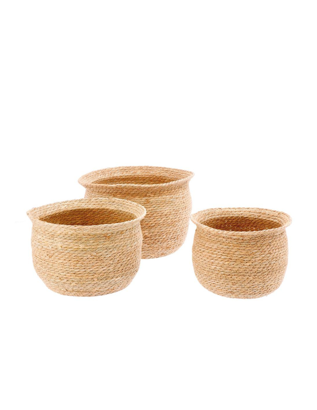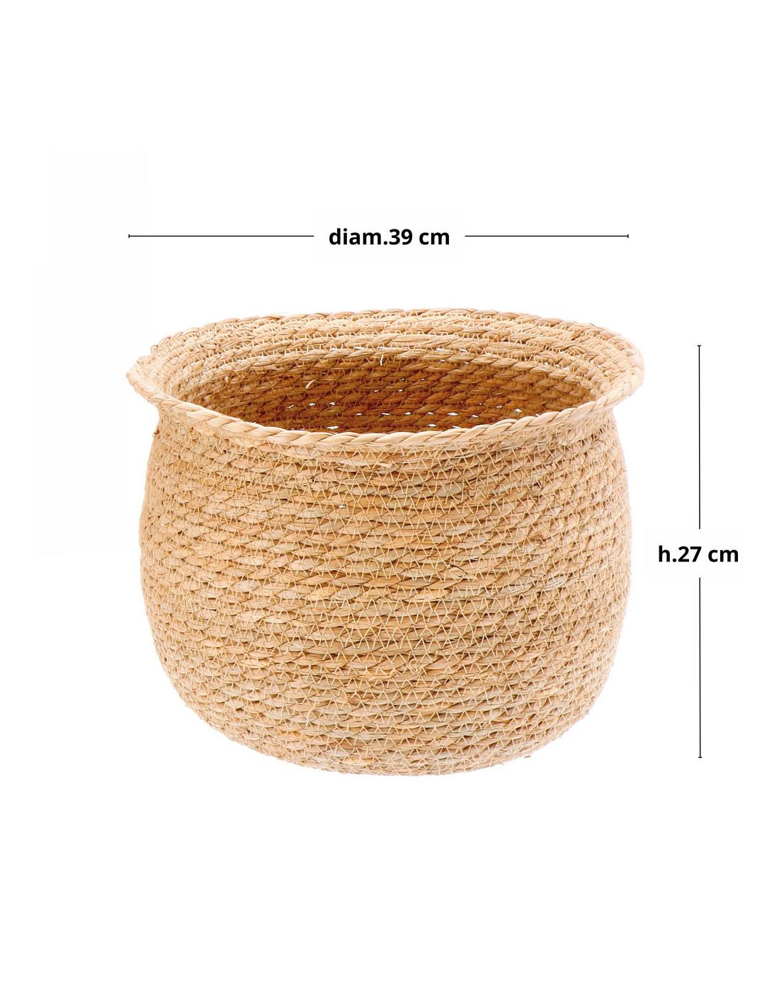 La fioriera tonda in mais diam.31/35/38cm porta un tocco naturale e luminoso grazie all’intreccio caldo delle fibre vegetali che crea una texture morbida e accogliente. Le tre misure disponibili -S- diam.30,5cm h.22cm, -M- diam.35cm h.24cm e -L- diam.39cm h.27cm permettono di valorizzare piante di diverse dimensioni, offrendo versatilità sia in casa che in veranda o in giardino. La forma arrotondata e leggermente svasata dona equilibrio visivo, mentre il colore naturale del mais si abbina facilmente a stili moderni, boho o rustici. Leggera ma stabile, diventa un elemento decorativo che aggiunge armonia e autenticità a qualsiasi ambiente.